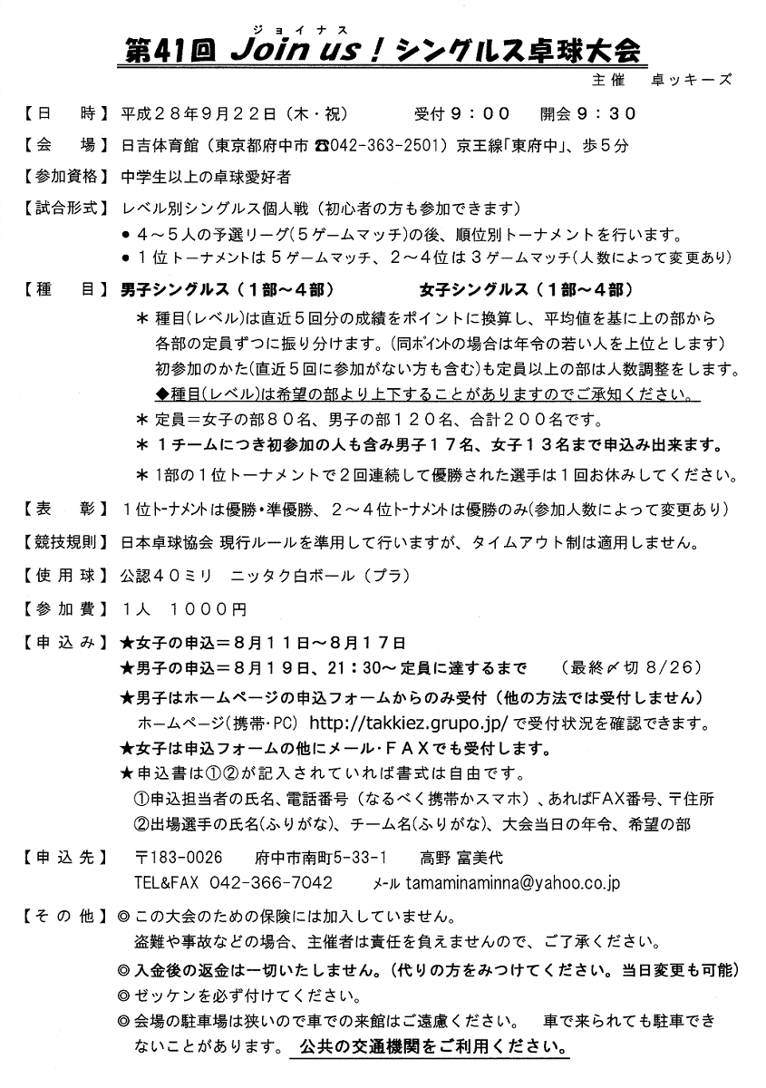 関東地方を中心とした卓球大会情報サイト nocha.jp