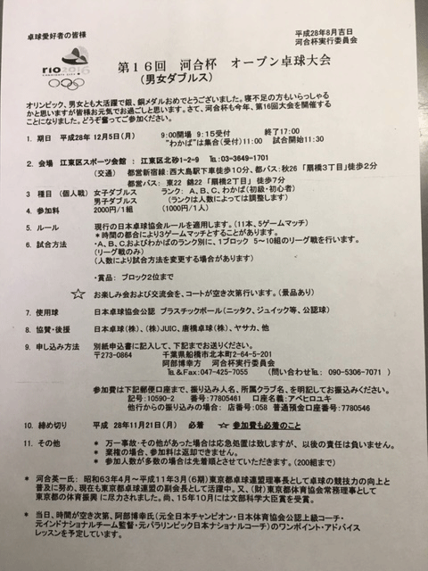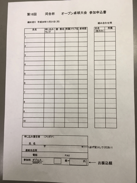 河合杯オープン卓球大会