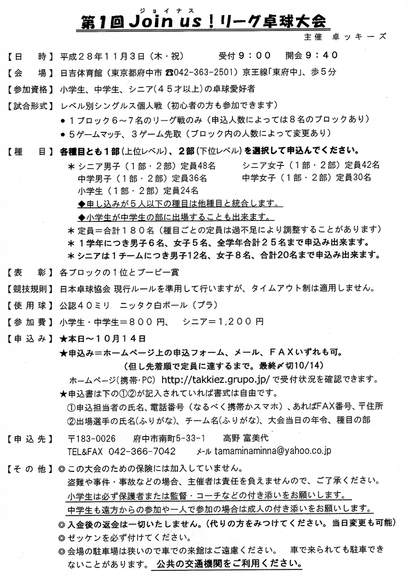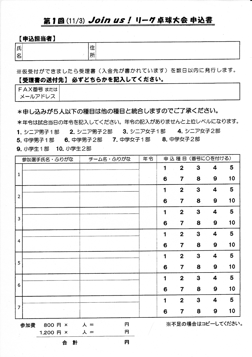 Join us ! リーグ卓球大会