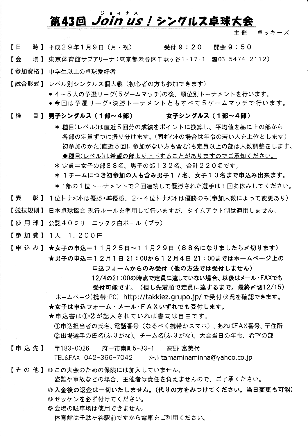 関東地方を中心とした卓球大会情報サイト nocha.jp