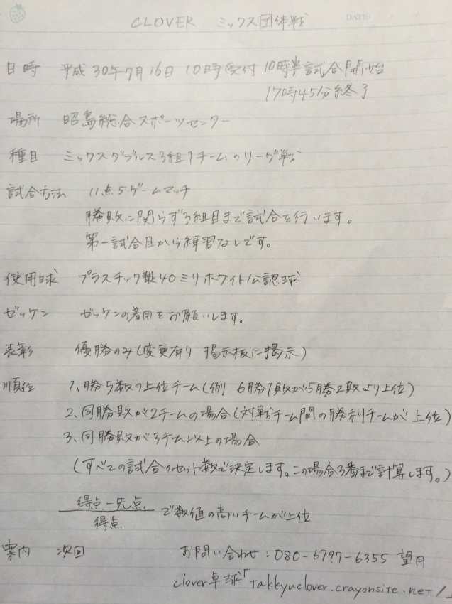 clover 3ミックスダブルス団体戦