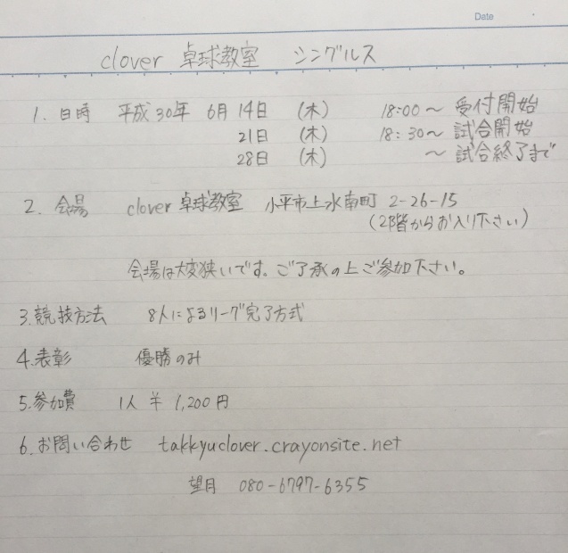 clover卓球シングルス