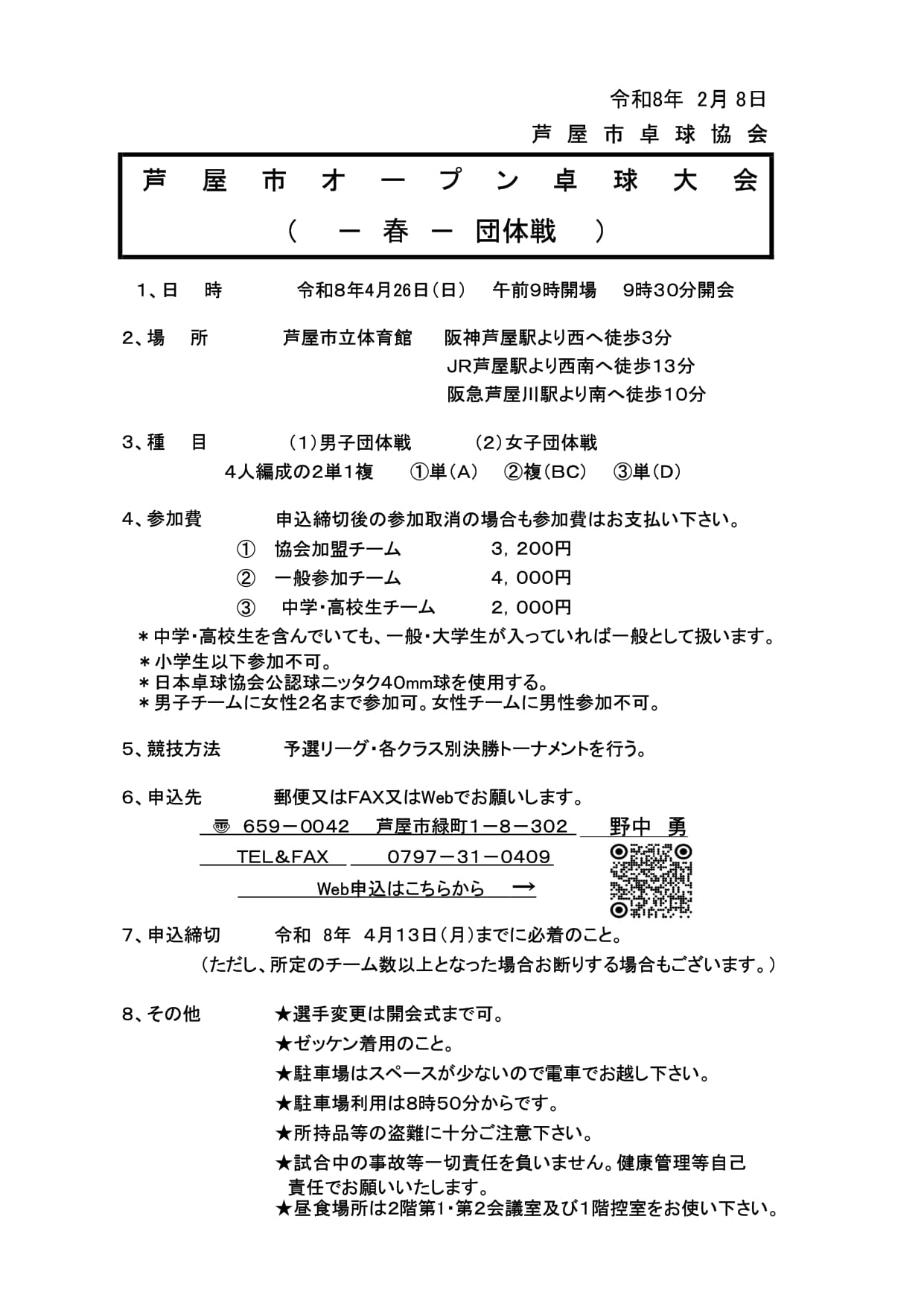 関東地方を中心とした卓球大会情報サイト nocha.jp