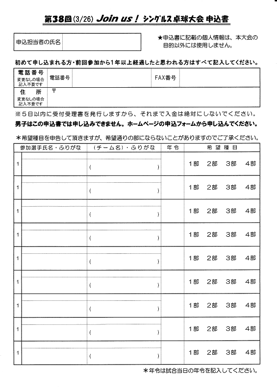 Join us!シングルス卓球大会