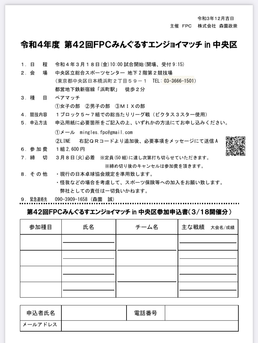 関東地方を中心とした卓球大会情報サイト nocha.jp